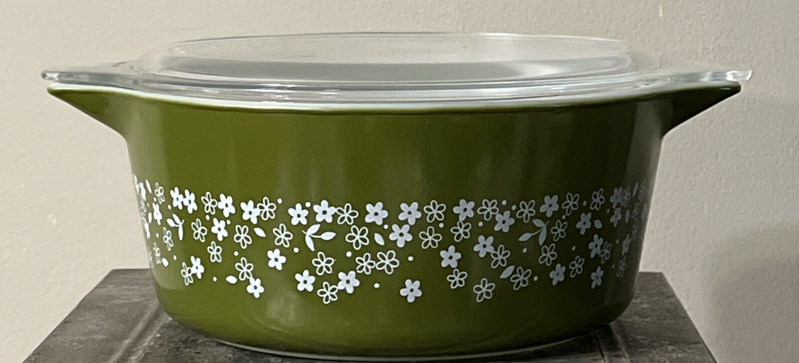 Title (ebay affiliate link): VINTAGE PYREX SPRING BLOSSOM CRAZY DAISY BUTTER DISH W/ LID 72B