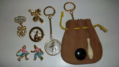 Title (ebay affiliate link): Vintage Lot Bowling Pins Brooches Key Chains Gold LOOK