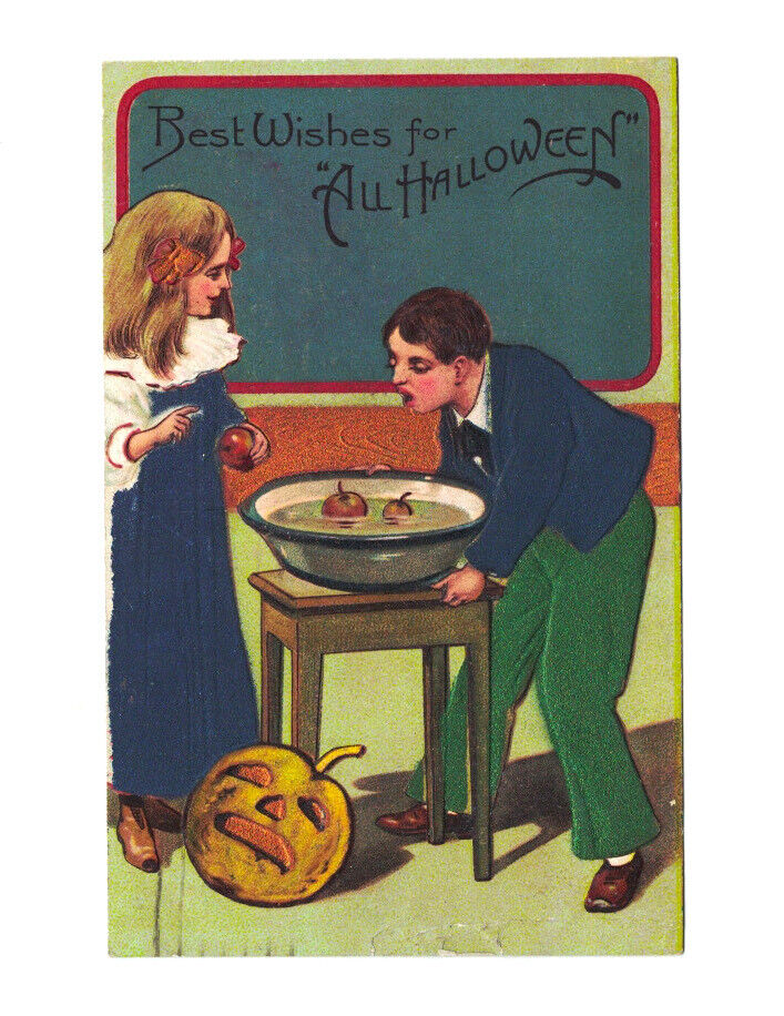 Title (ebay affiliate link): Antique Halloween Postcard Boy Girl with JOL Parade Lantern Heavy Gold Ink