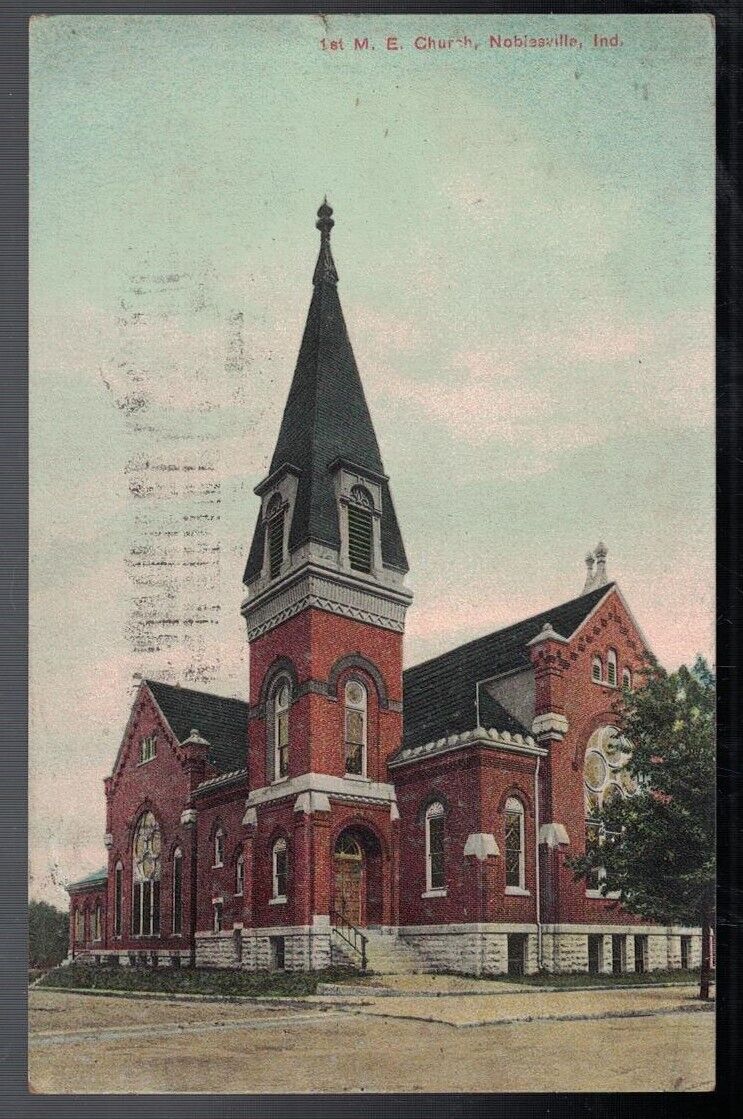 ANTIQUE 1908 1ST M.E. CHURCH NOBLESVILLE INDIANA POSTCARD