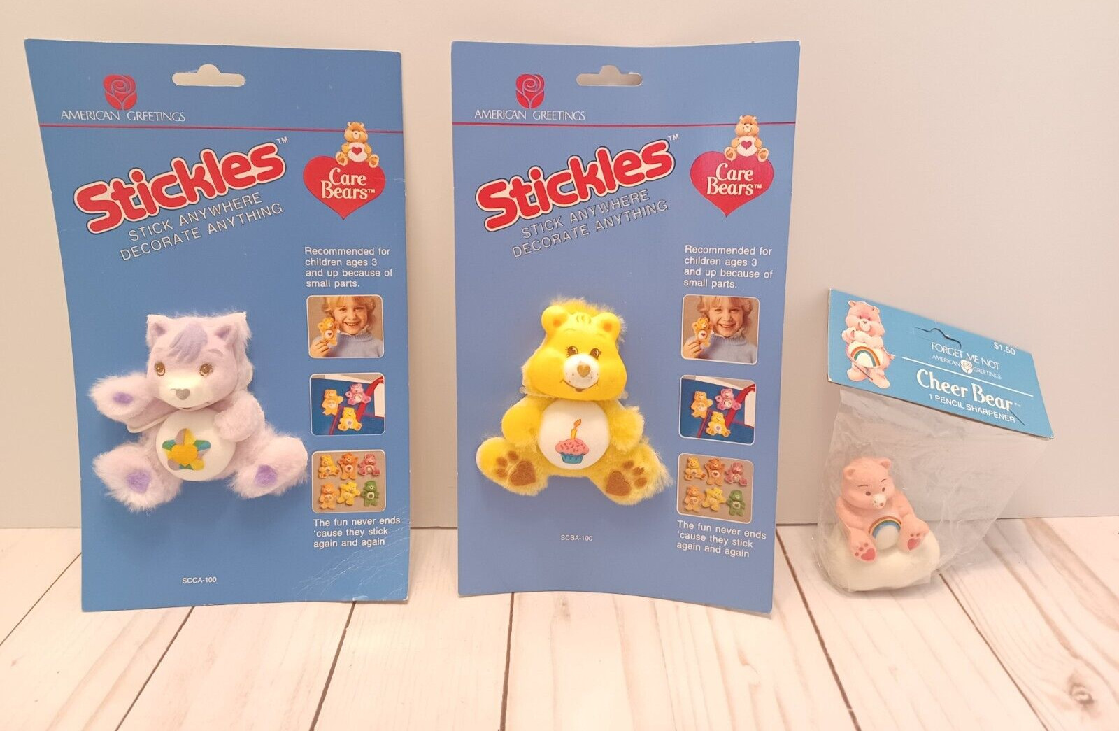 Vintage Care Bear Stickles and Sealed Pencil Sharpener Rare Plush Stickers