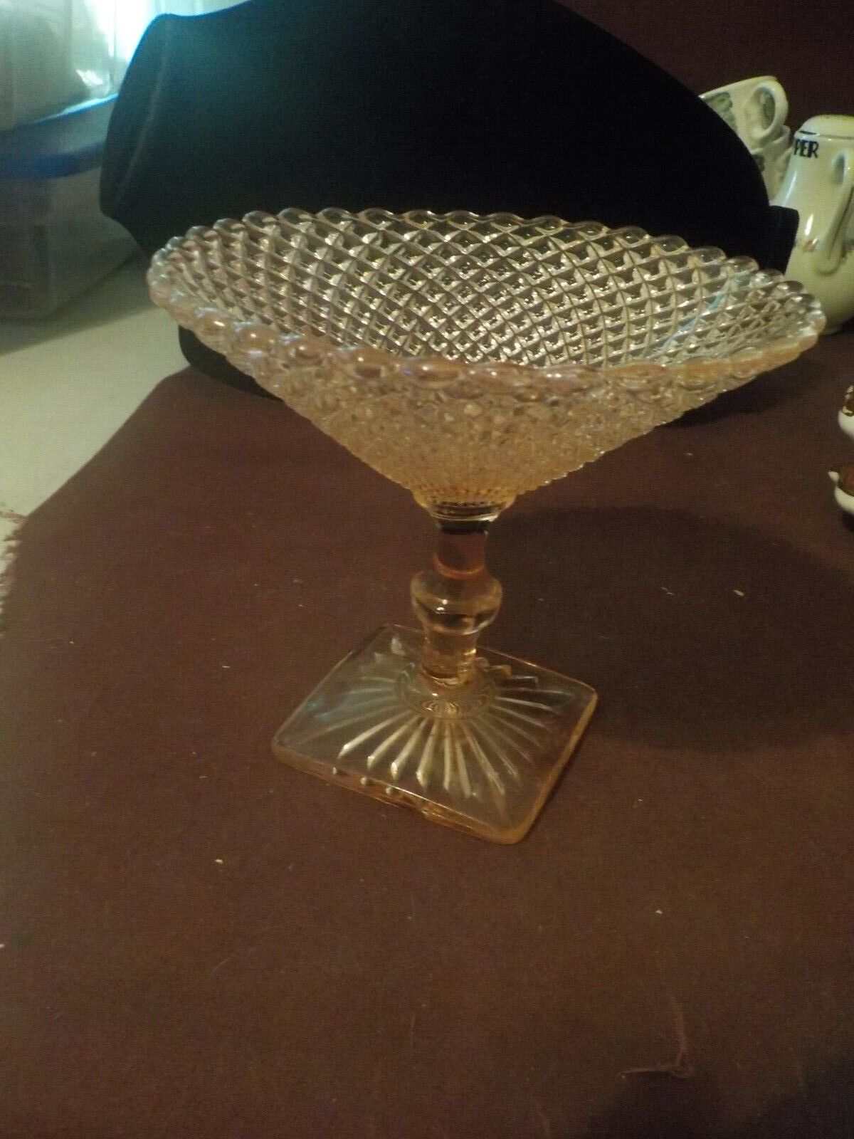 Title (ebay affiliate link): VINTAGE BEAUTIFUL PINK DEPRESSION CANDY DISH ON PEDISTAL