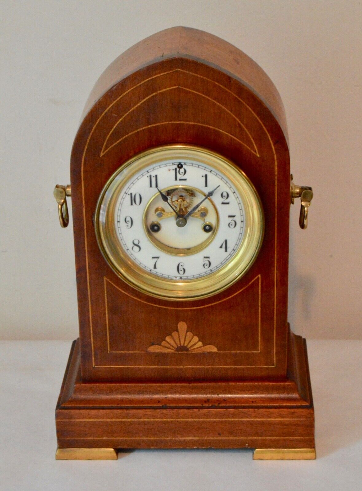 Title (ebay affiliate link): ANTIQUE WATERBURY BEEHIVE CLOCK INLAID WOOD OPEN ESCAPEMENT NEEDS TLC LOT VS