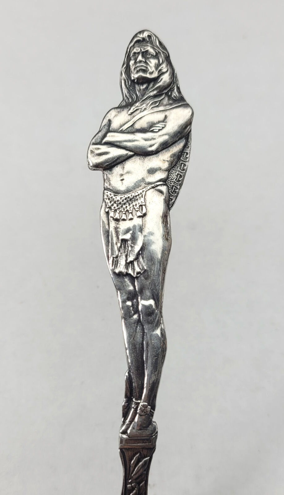 FULL FIGURAL Native American Indian Chief Sterling Silver Souvenir Spoon WOW