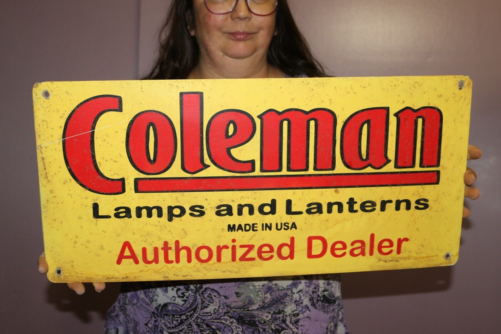 Vintage Coleman Lamps Lighting Dealer Hunting Fishing Gas Oil 2334 Metal Sign