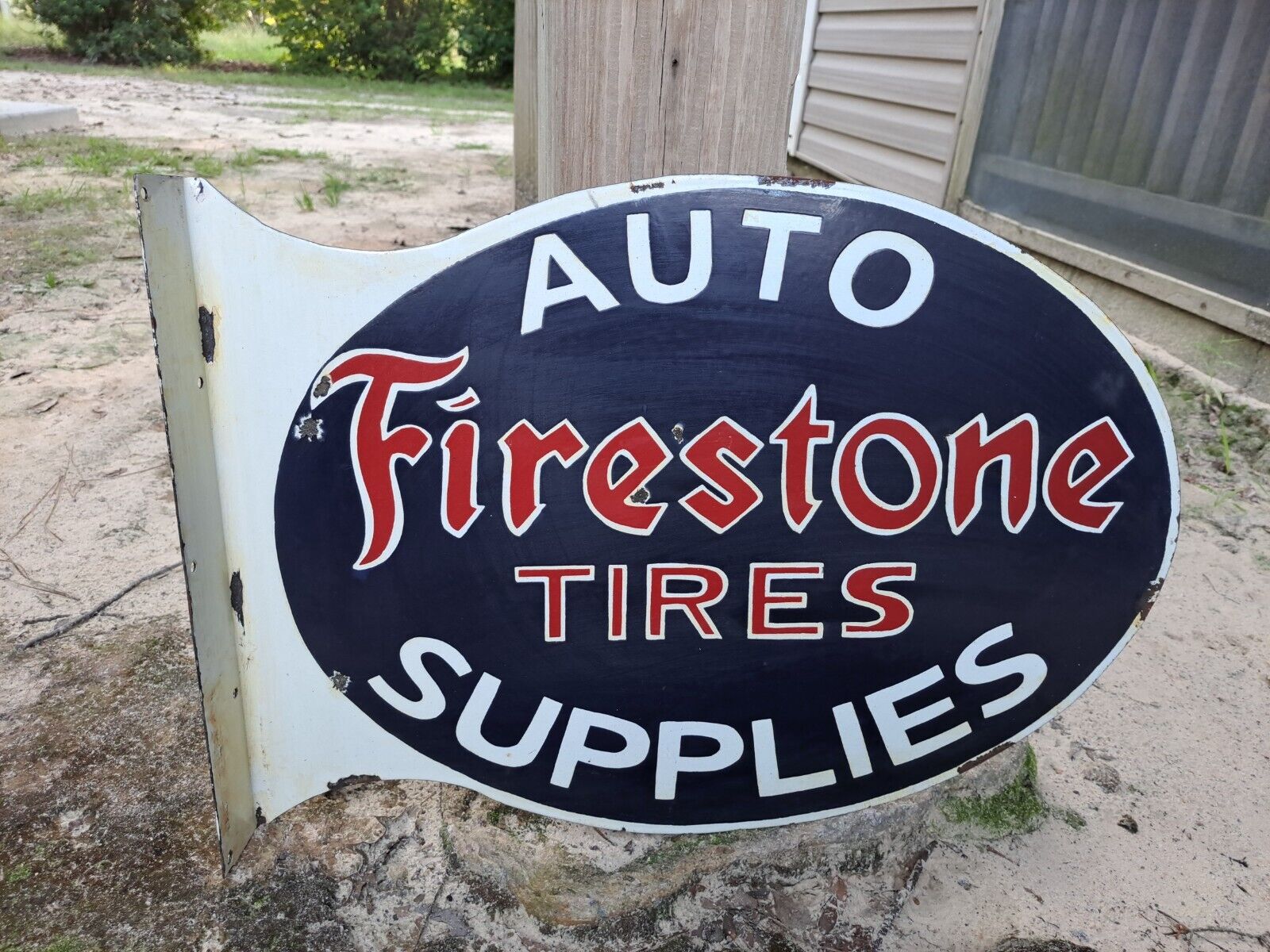 Title (ebay affiliate link): Vintage Firestone Tires Double Sided Flange Porcelain Sign Rare Car Truck Oil