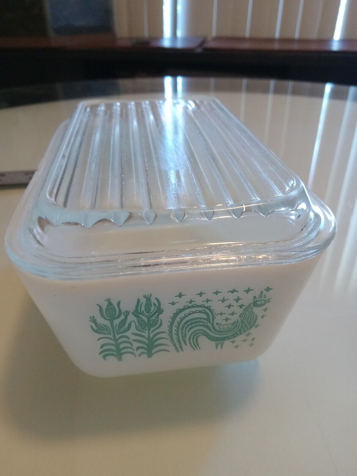 Title (ebay affiliate link): Vintage Pyrex Turquoise Amish Butterprint Refrigerator Dish 0502 1 1/2 Pt w Lid