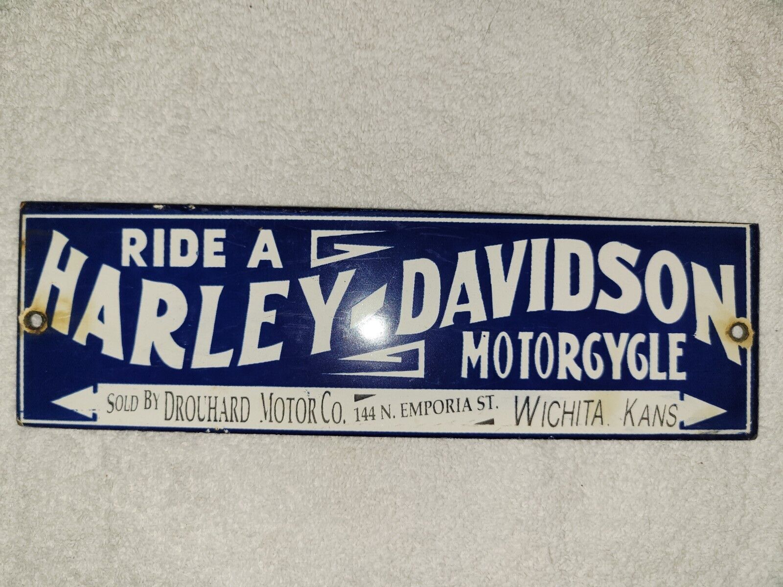 Vintage Harley Davidson Motorcycle Porcelain Sign Dealer Kansas Gas Oil Indian
