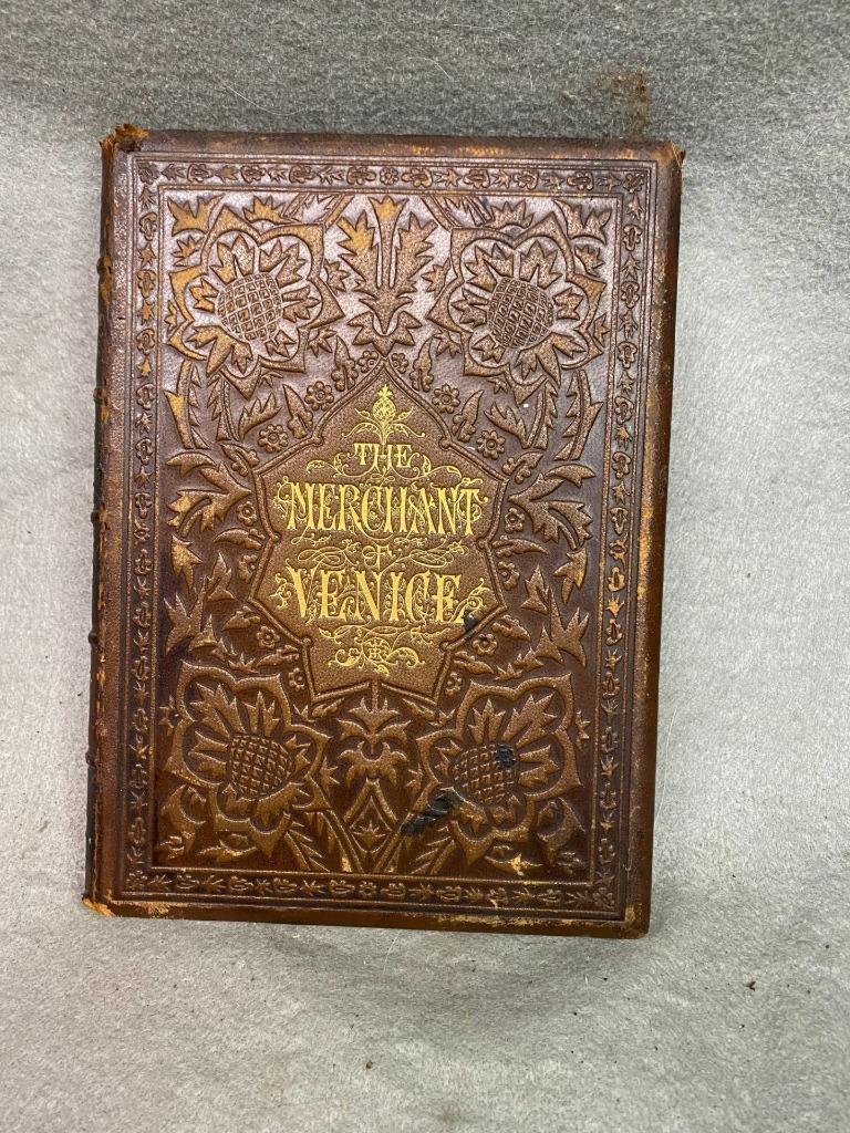 Title (ebay affiliate link): ANTIQUE BOOK 34THE MERCHANT OF VENICE34 1860 LEATHER BOUND