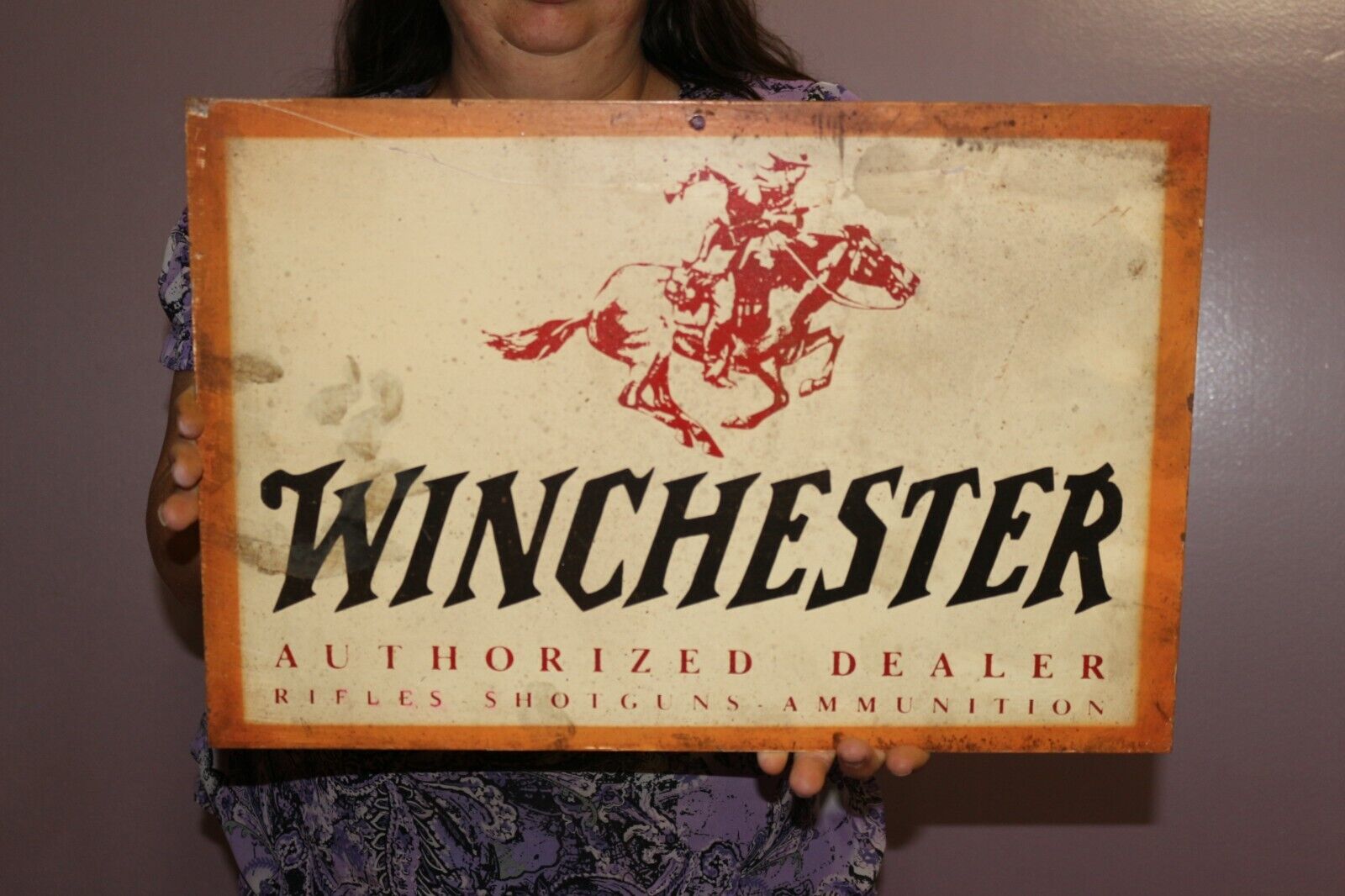 Vintage 1950s Winchester Gun Dealer Rifle Shotgun Hunting 1834 Metal Sign