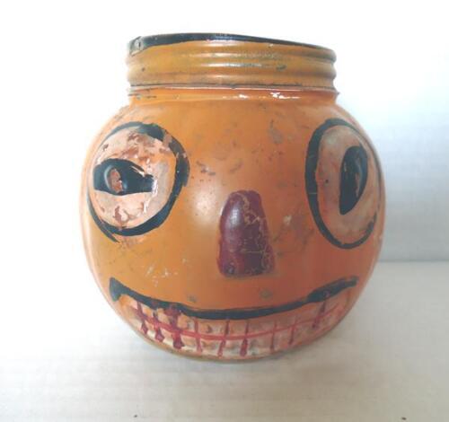 ANTIQUE GLASS HALLOWEEN JACK O LANTERN CANDY CONTAINER RARE