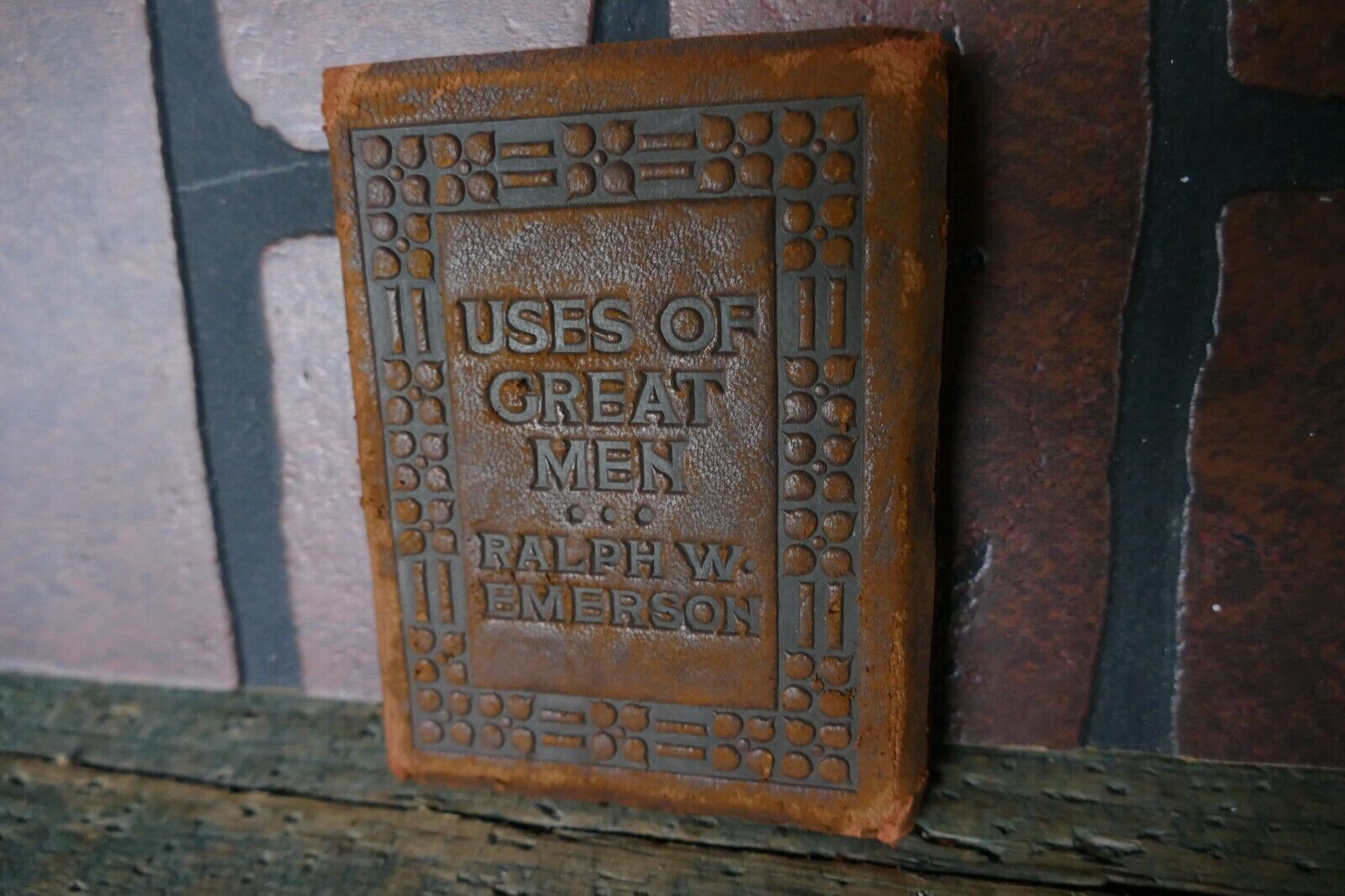 Title (ebay affiliate link): antique little leather library book Uses of Great Men Ralph w. Emerson
