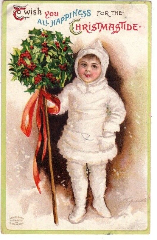 Title (ebay affiliate link): ANTIQUE CHRISTMAS Postcard ELLEN CLAPSADDLE YOUNG GIRL WHITE SNOWSUIT