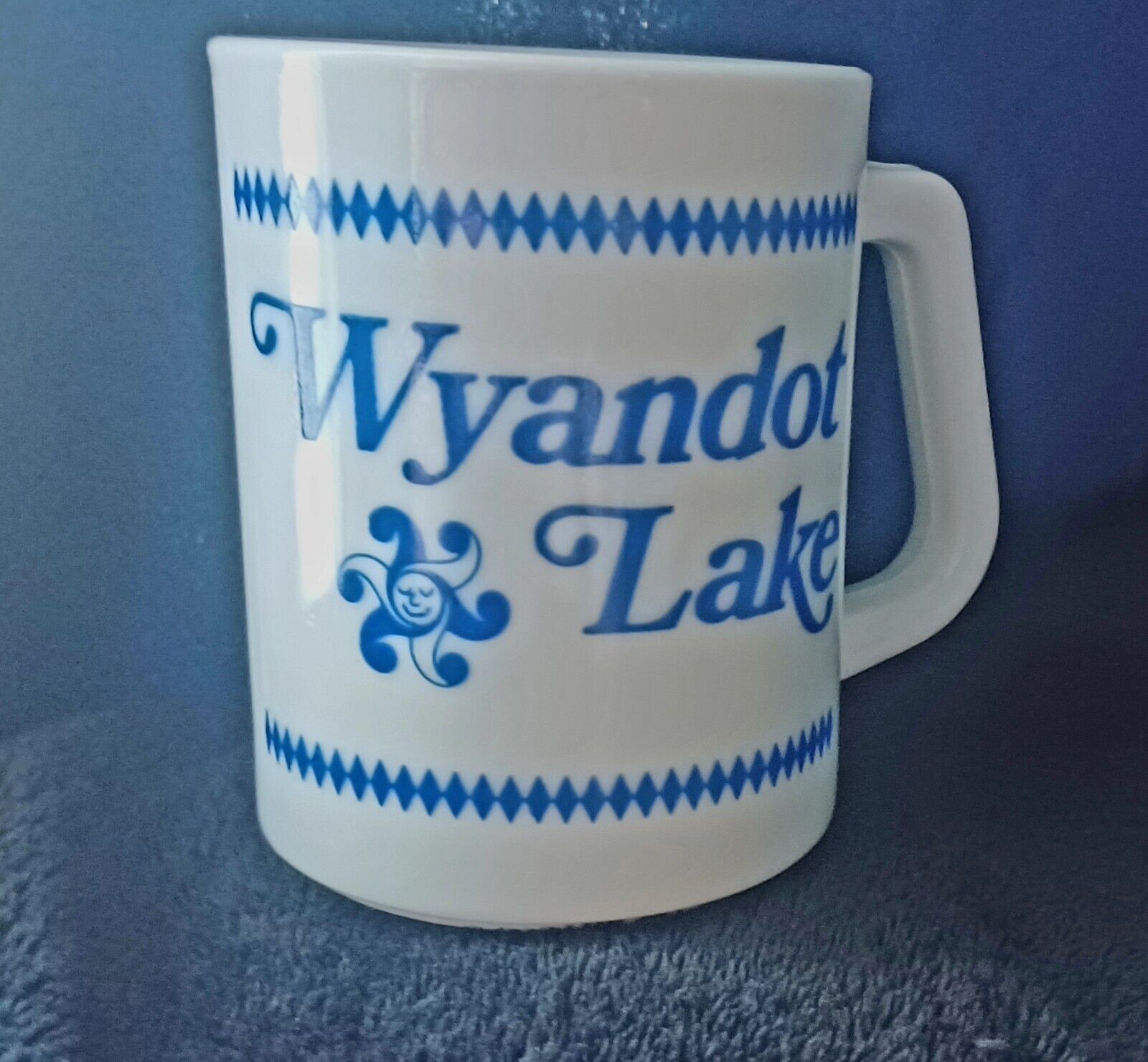 Wyandot Lake Columbus Oh Zoo Amusement Park Souvenir White Milkglass Mug Vintage