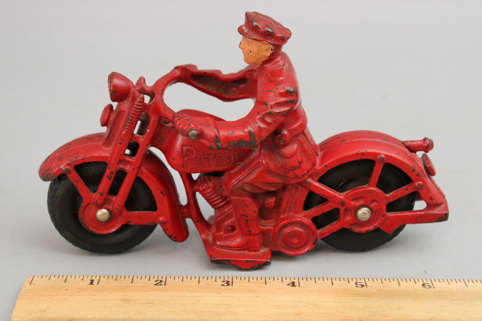 Antique Hubley Cast Iron Patrol Motorcycle Toy Harley Hardtail NO RESERVE