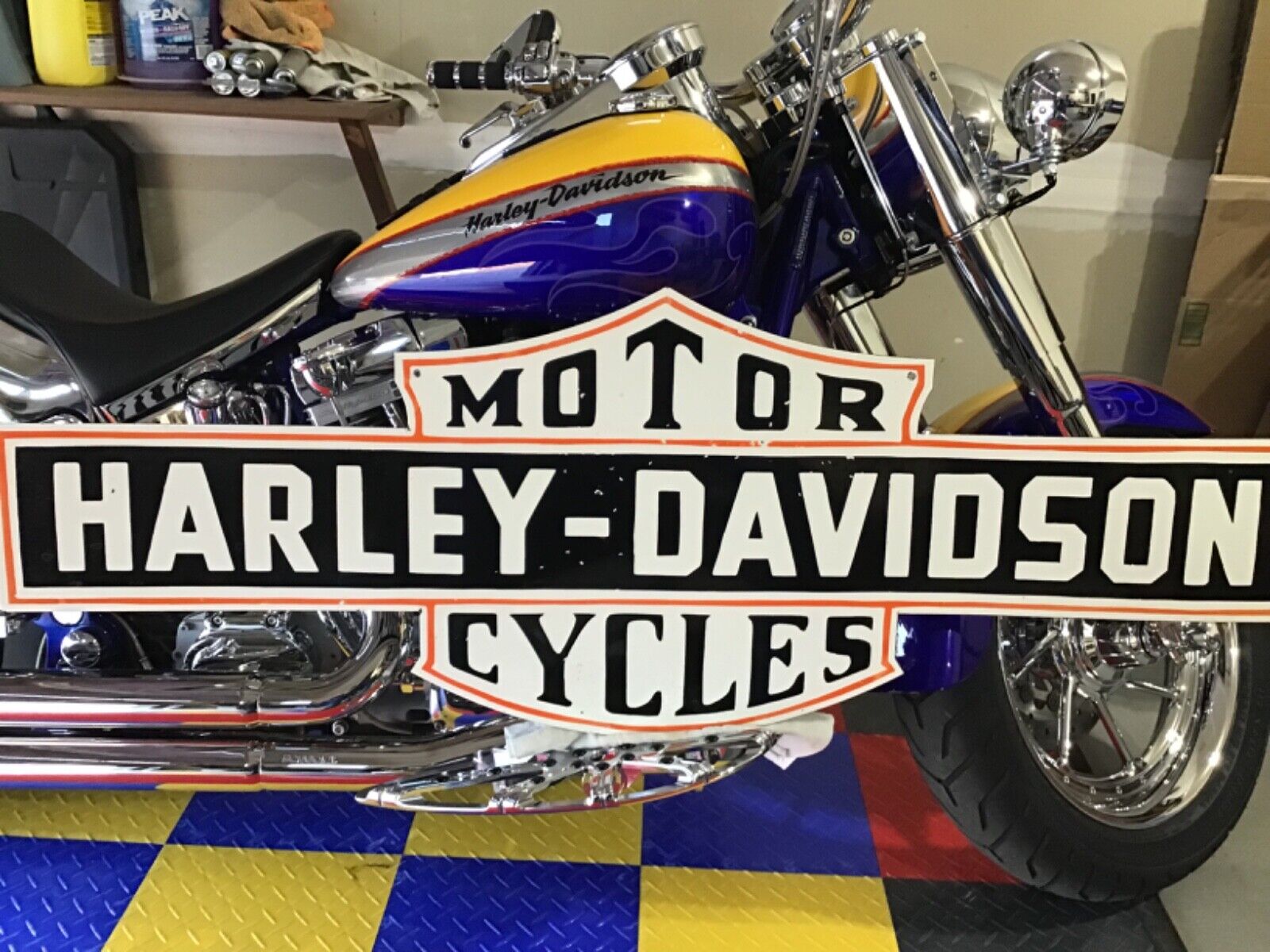 Title (ebay affiliate link): Vintage Harley Davidson BarShield Dealership’s Porcelain Sign DoubleSided