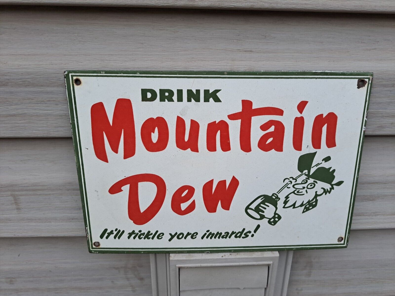 Vintage Mountain dew Porcelain Sign Nice Fishing Camping Hunting