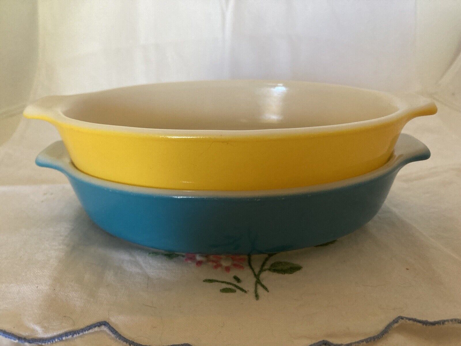 Title (ebay affiliate link): Set of 2 Pyrex Pixies 700 Au Gratin Blue Yellow MidCentury BakewareOvenware