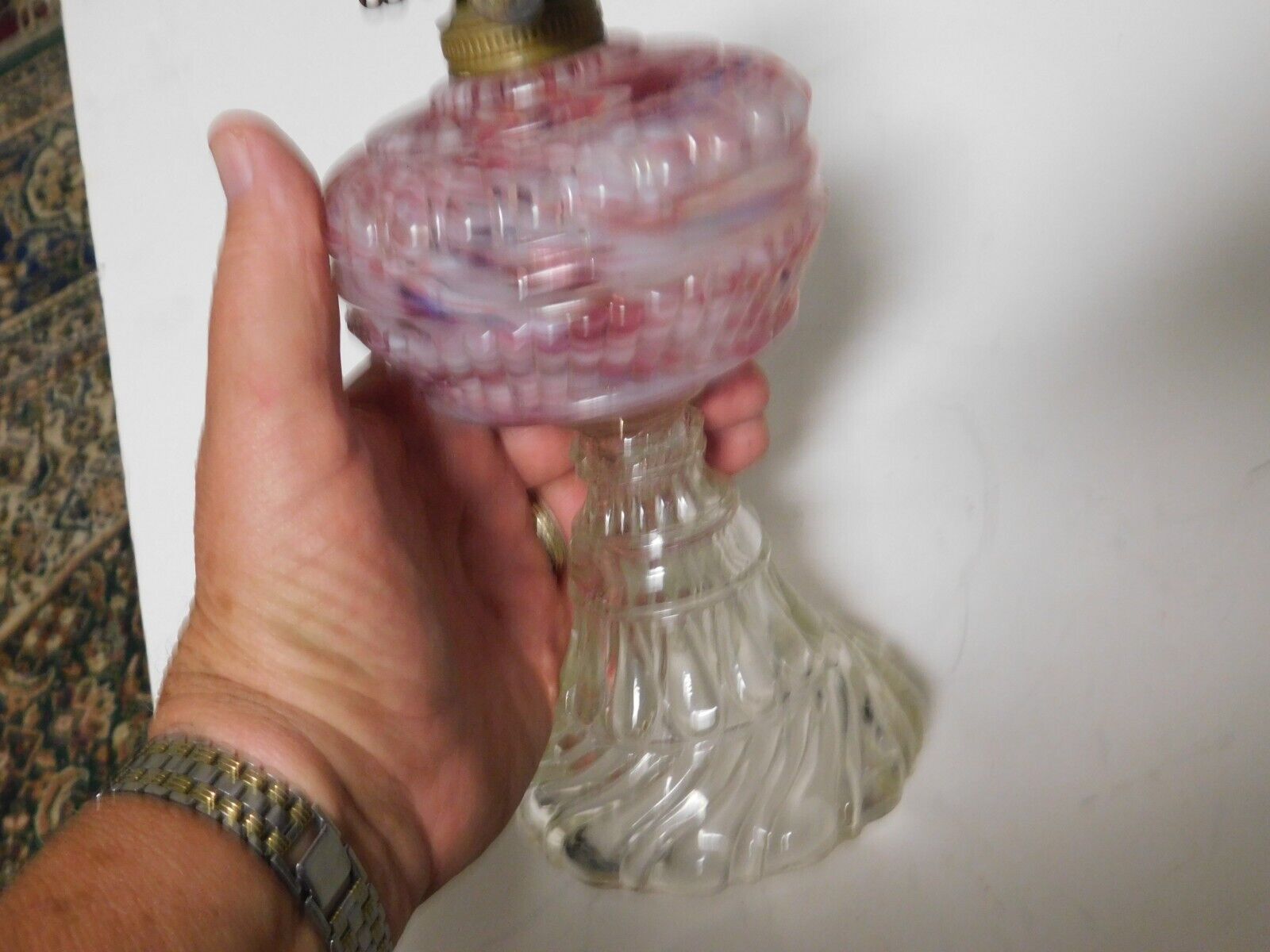 Title (ebay affiliate link): antique cranberry swirl font pattern glass base oil lamp as isl