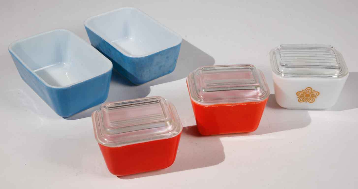 VINTAGE PYREX BLUE RED BUTTERFLY REFRIGERATOR DISHES