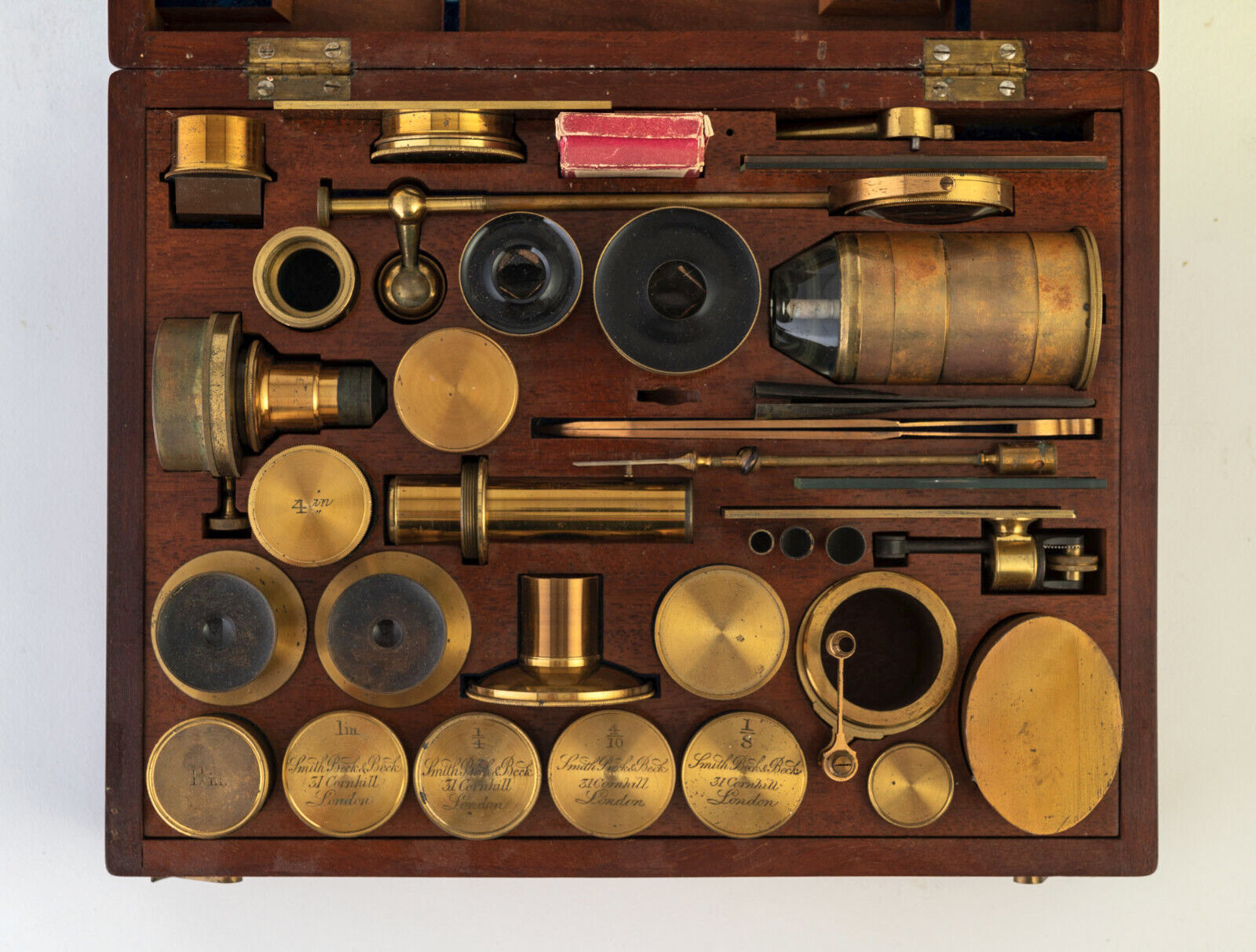 Antique Smith Beck Beck accessory case for a brass binocular microscope C.