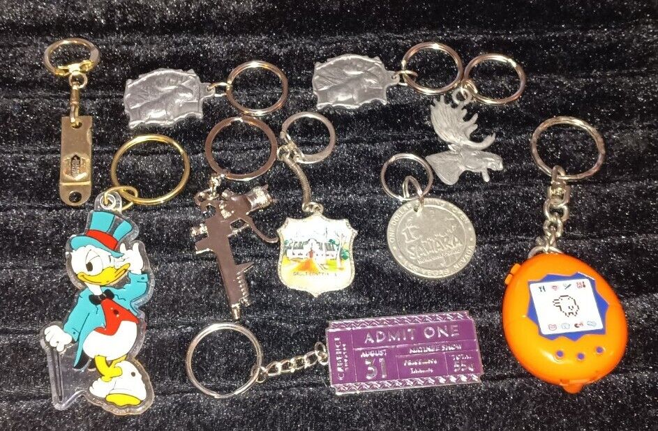 Title (ebay affiliate link): Vintage Keychain Disney Moose Paint Gun Tamagatchi Mixed Resale lot