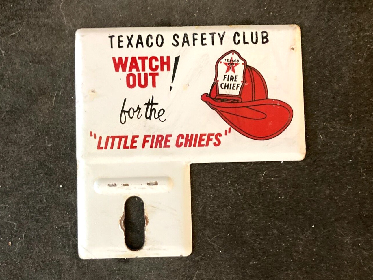 Vintage TEXACO LITTLE FIRE CHIEFS LICENSE PLATE TOPPER Rare Old Advertising Sign