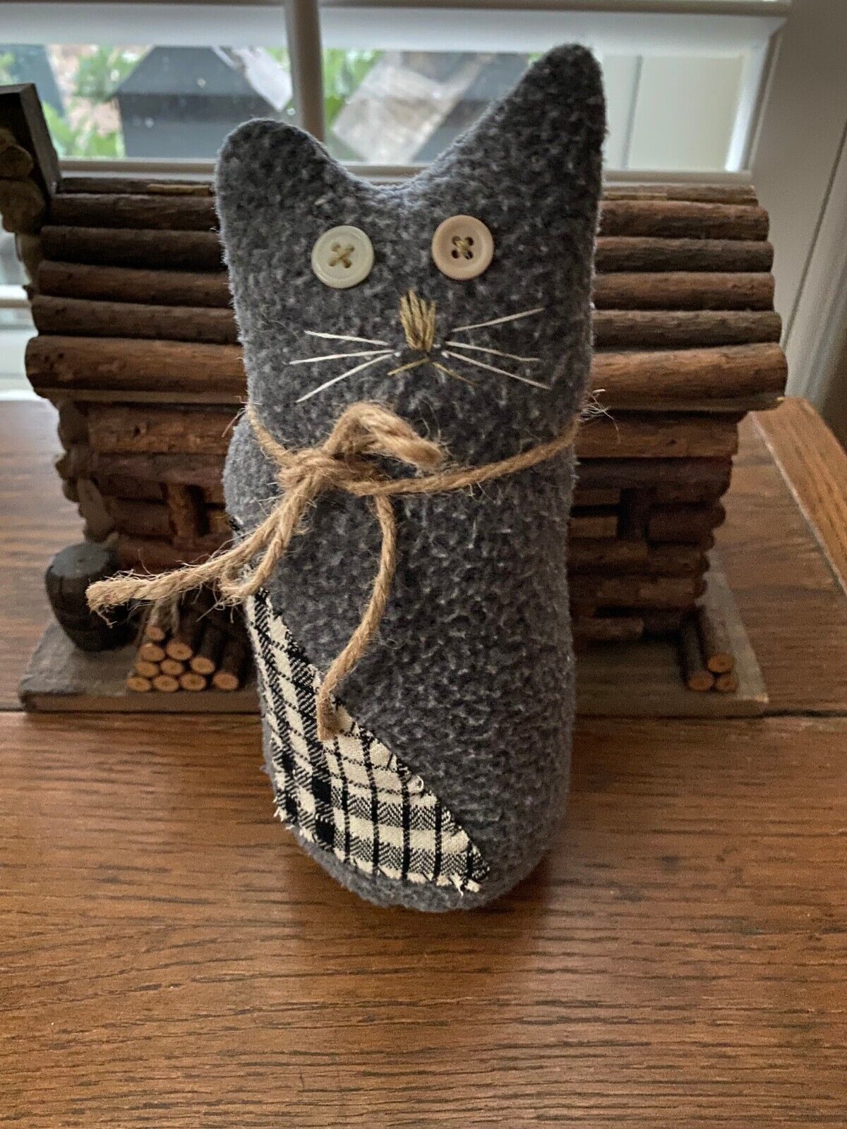 Title (ebay affiliate link): Primitive Stitchery Kitty Cat Ozzie Dark Grey Halloween Harvest