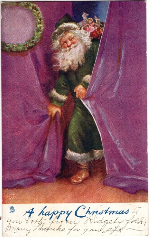 Title (ebay affiliate link): ANTIQUE RAPHAEL TUCK 34OILETTE34 CHRISTMAS Postcard SANTA CLAUS GREEN COAT