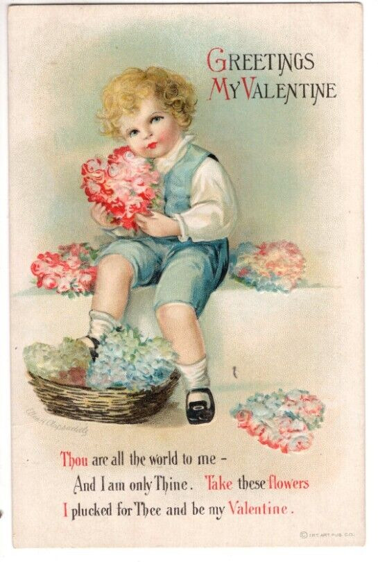 Title (ebay affiliate link): ANTIQUE VALENTINE Postcard ELLEN CLAPSADDLE YOUNG BOY FLORAL HEARTS