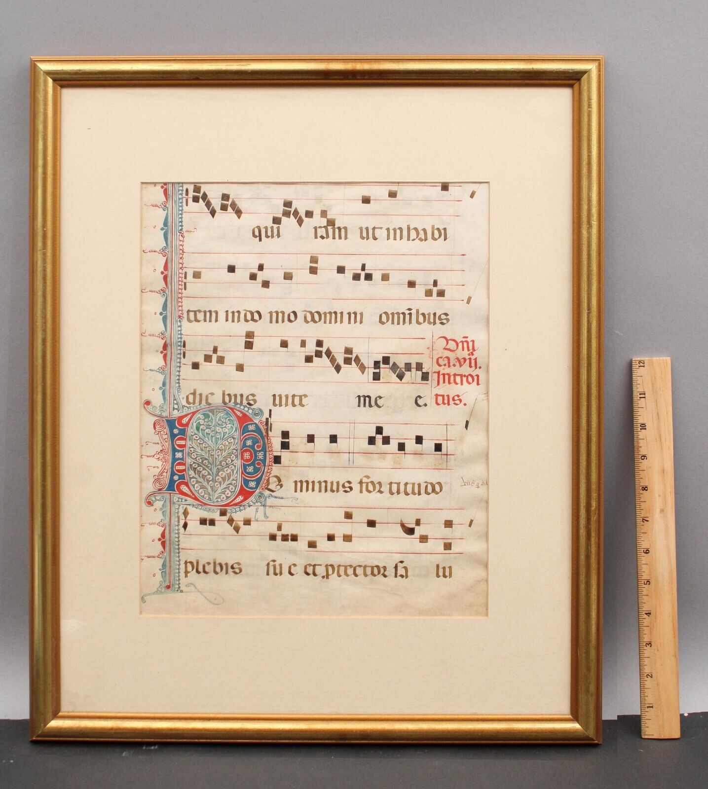 14thC Antique Calligraphy Illuminated Painting Vellum Sheet Music Manuscript NR
