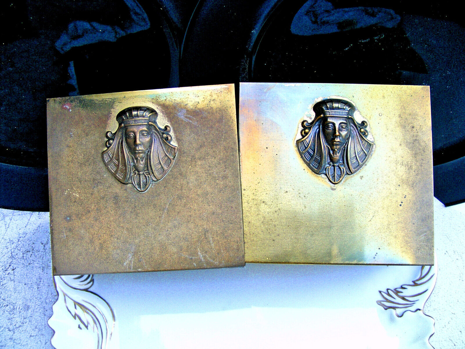 Pair Antique All Brass Egyptian Revival Art Deco Bookends Pharaoh Art Decor