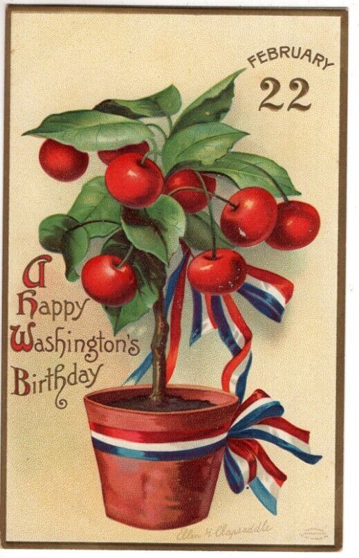 ANTIQUE PATRIOTIC Postcard  ELLEN CLAPSADDLE   34A HAPPY WASHINGTONS BIRTHDAY34
