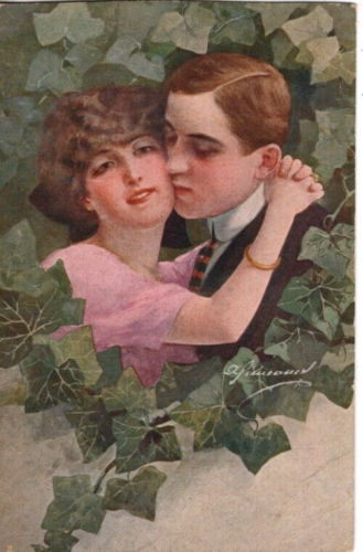 ANTIQUE LOVE AND ROMANCE Postcard YOUNG LADY BRACELET ARMS AROUND GENT IVY