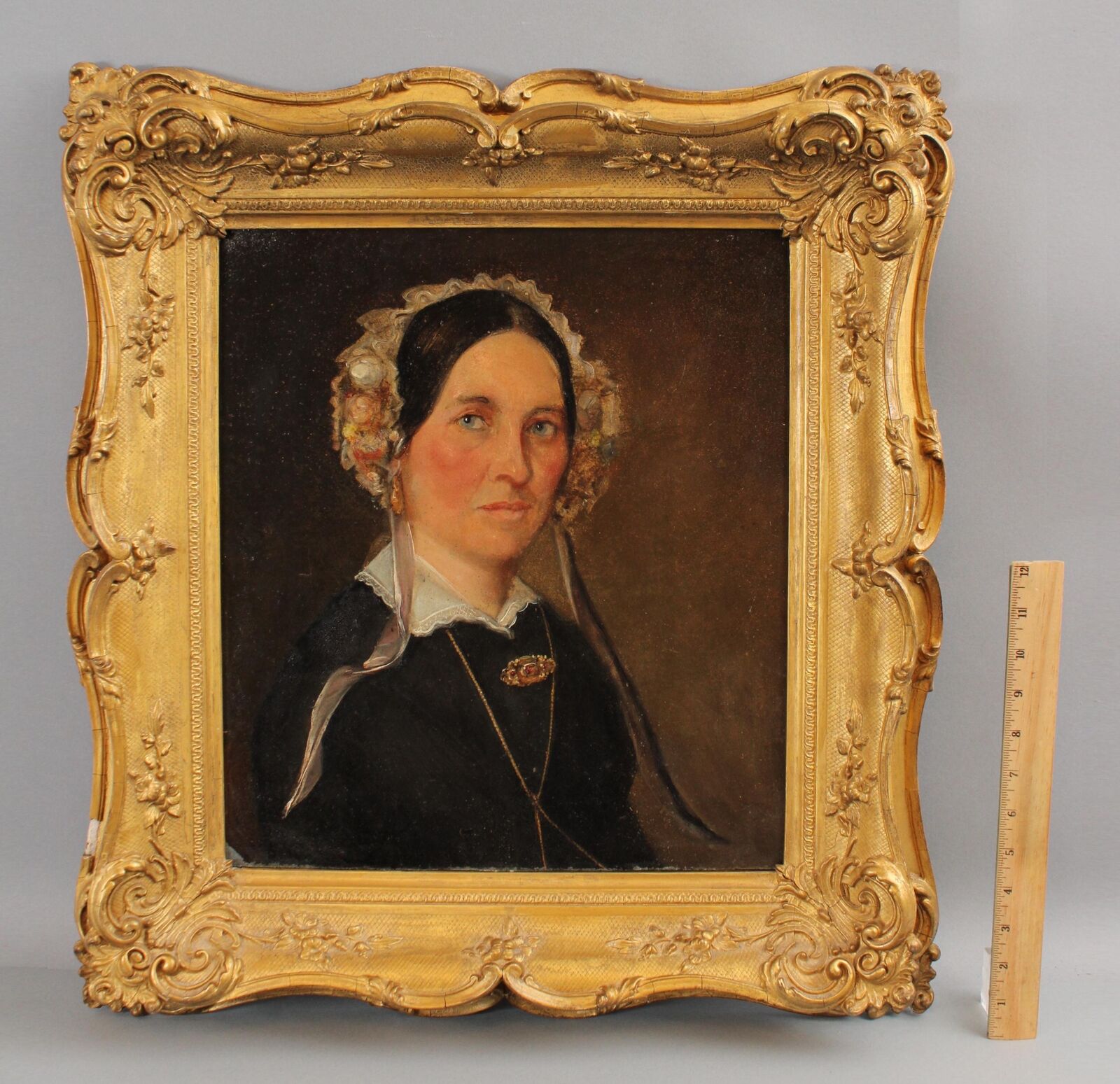 Title (ebay affiliate link): Antique 19thC American Portrait Oil Painting Labeled Frame NO RESERVE