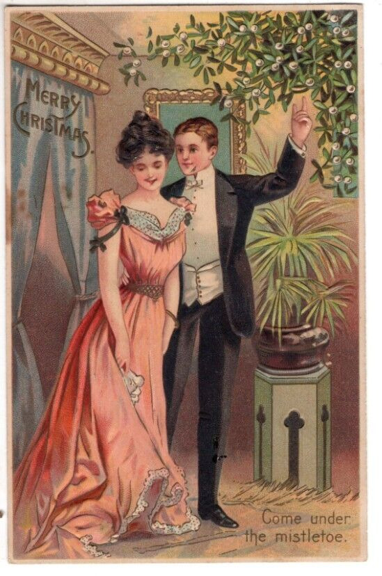 Title (ebay affiliate link): ANTIQUE EMBOSSED CHRISTMAS Postcard 34COME UNDER THE MISTLETOE34