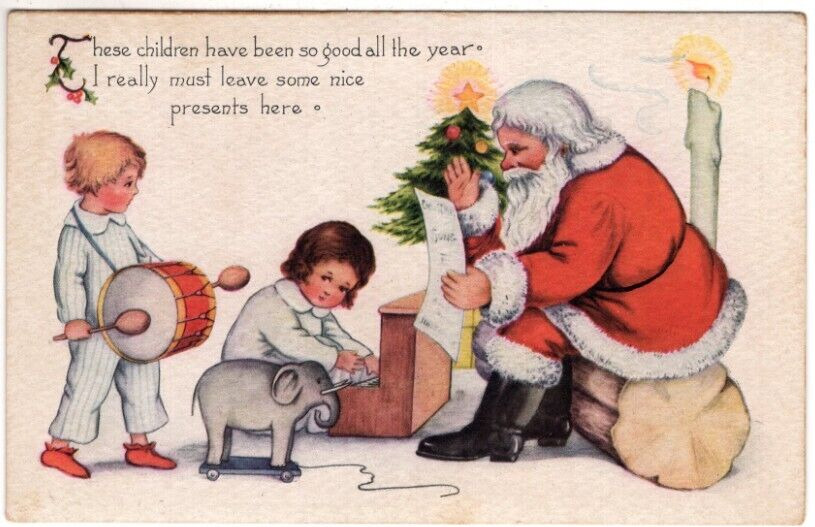 ANTIQUE CHRISTMAS Postcard SANTA 34I REALLY MUST LEAVE SOME NICE PRESENTS HERE