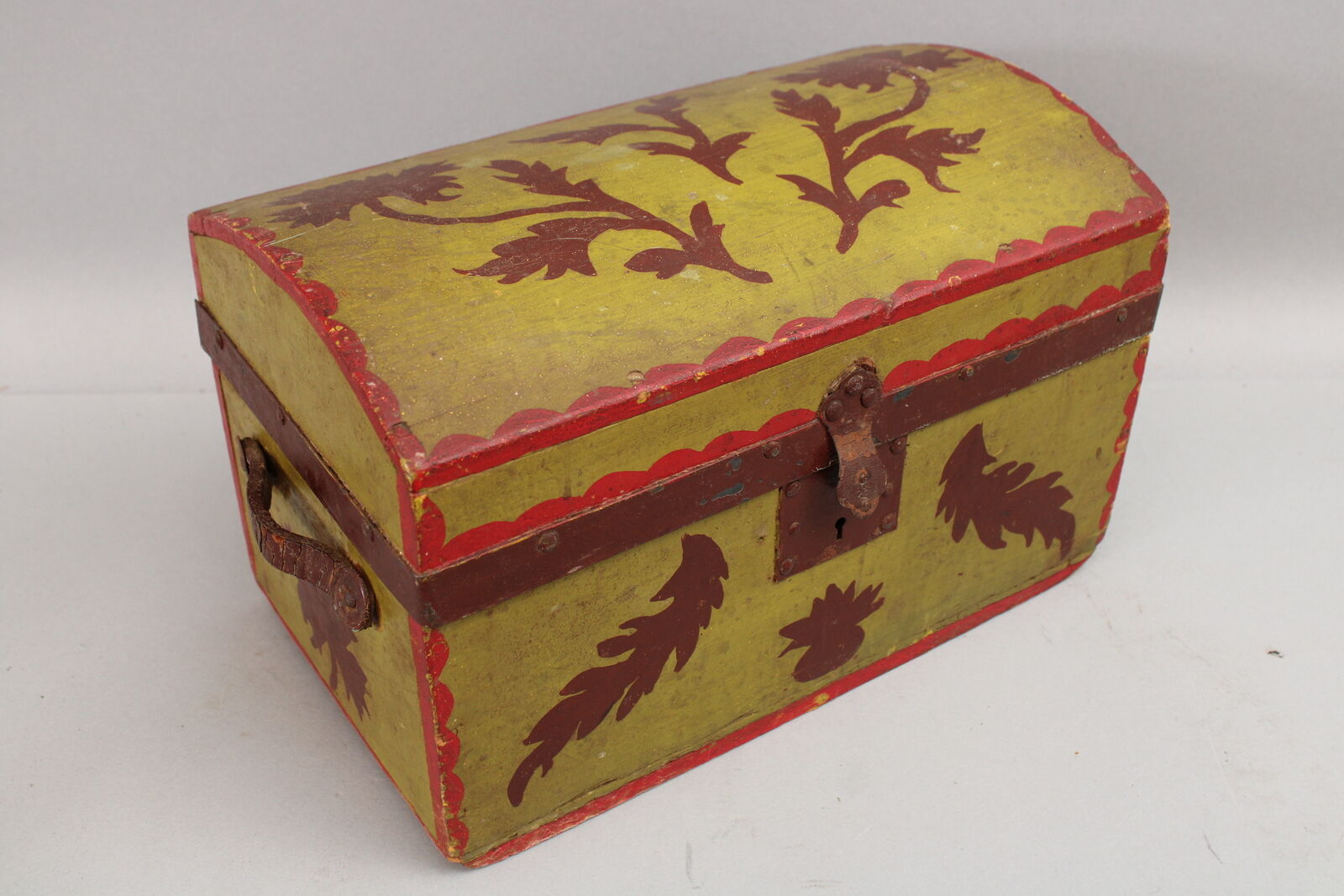 Title (ebay affiliate link): Small 19thC Antique Folk Art Painted Primitive Dills Trunk Chest Box NO RESERVE