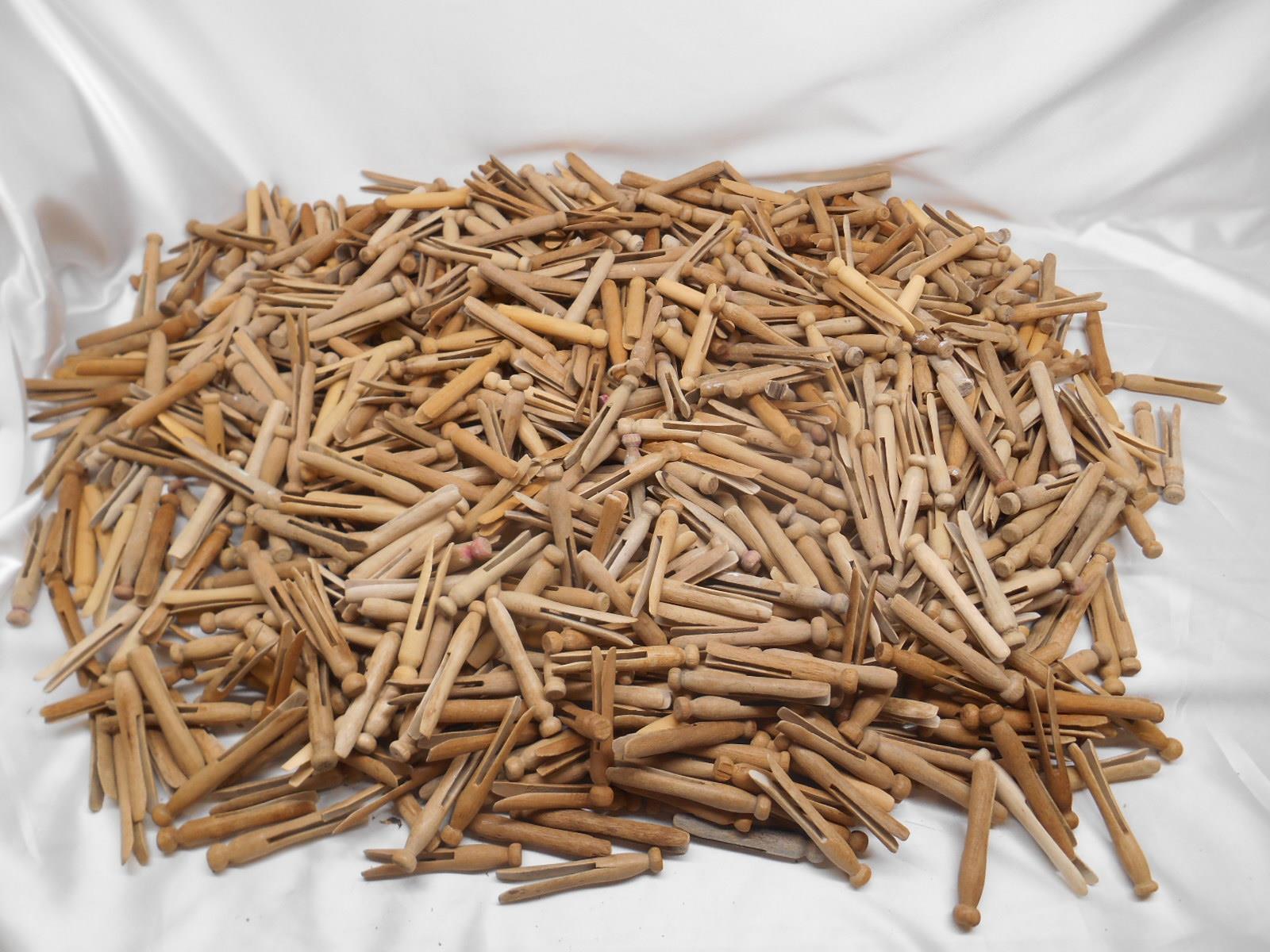 Antique Primitive LARGE LOT 816 WOOD CLOTHES PINS ROUND TOP ARTS CRAFTS