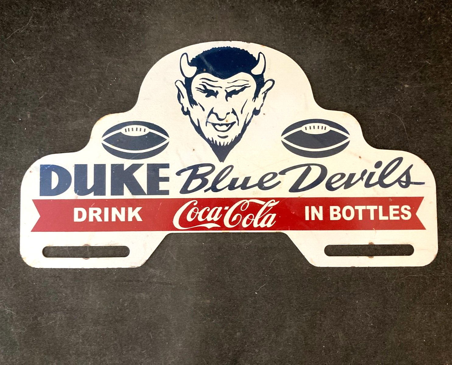 Vintage DUKE BLUE DEVILS COCACOLA LICENSE PLATE TOPPER Rare Old Advertisin Sign