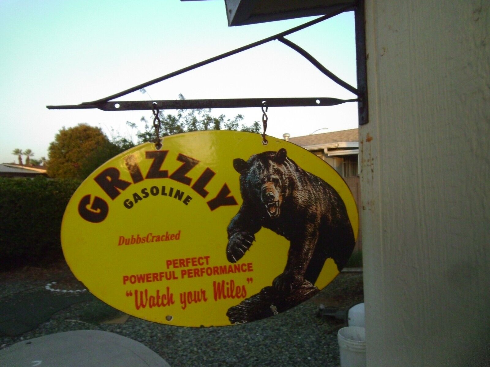 Title (ebay affiliate link): Grizzly Gasoline Double sided porcelain sign