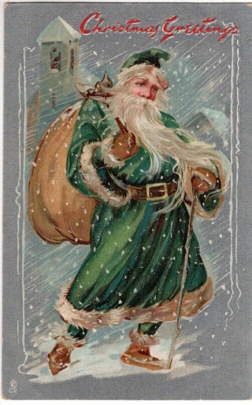 ANTIQUE CHRISTMAS Postcard RAPHAEL TUCK SANTA CLAUS GREEN COAT AND PANTS