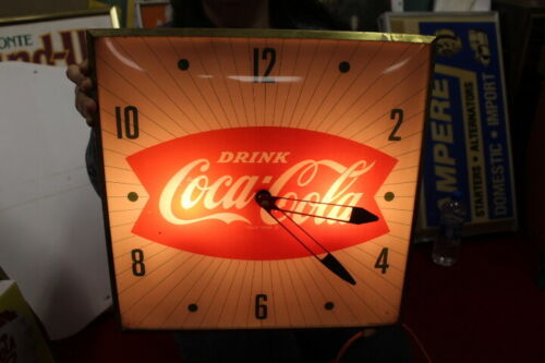 Title (ebay affiliate link): Vintage c.1960 Coca Cola Fishtail Soda Pop 1534 Lighted Pam Clock Sign WORKS