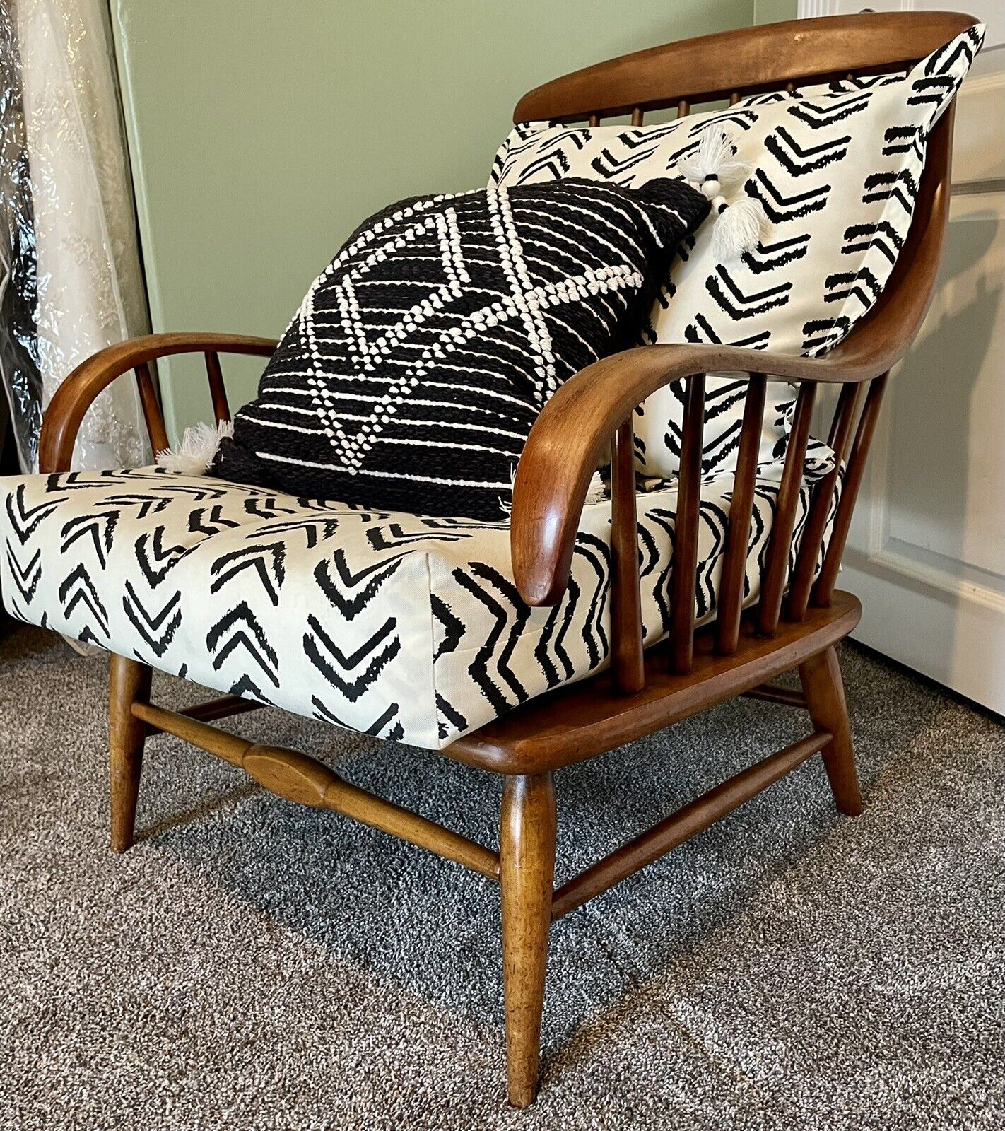 Title (ebay affiliate link): Rare Vintage Heywood Wakefield Mid Century Modern Arm Chair Doeskin Maple Finish