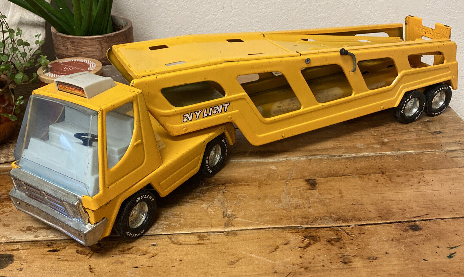 Title (ebay affiliate link): Vintage Pressed Steel Toy Car Nylint Hauler/Carrier 1970 Yellow Truck
