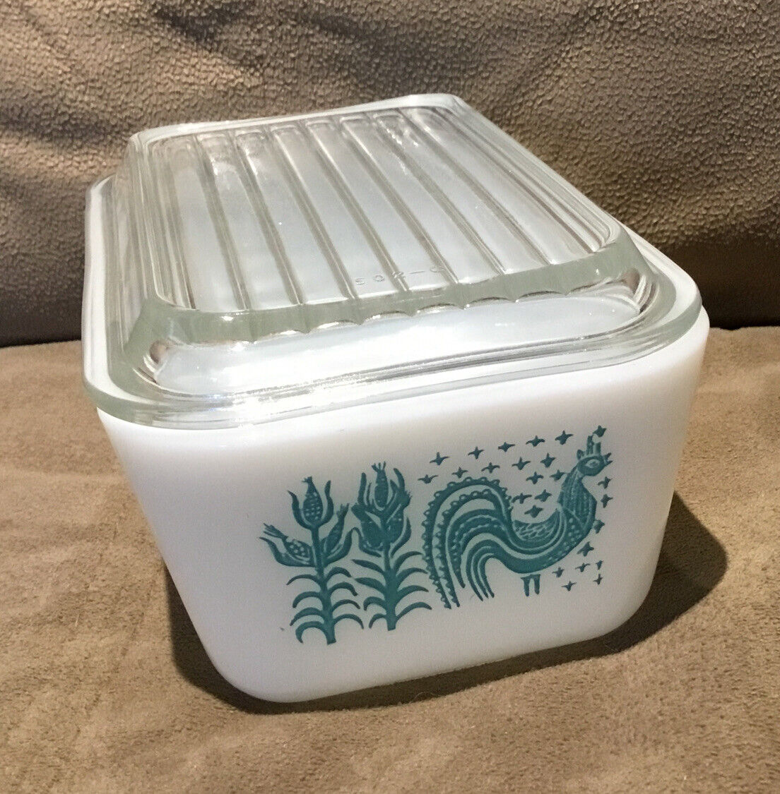 Pyrex Refrigerator Dish Amish Butterprint Turquoise 502 1.5 Pt w/ Lid Vintage