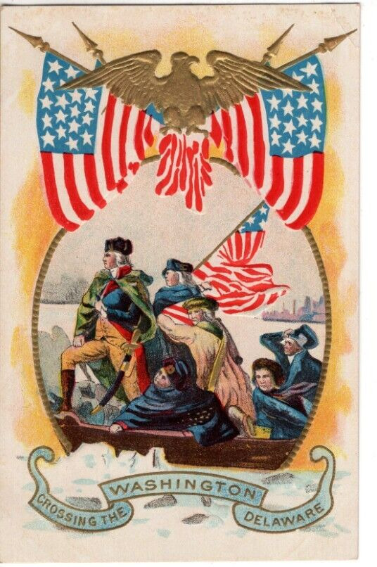 Title (ebay affiliate link): ANTIQUE EMBOSSED PATRIOTIC Postcard 34WASHINGTON CROSSING THE DELAWARE34