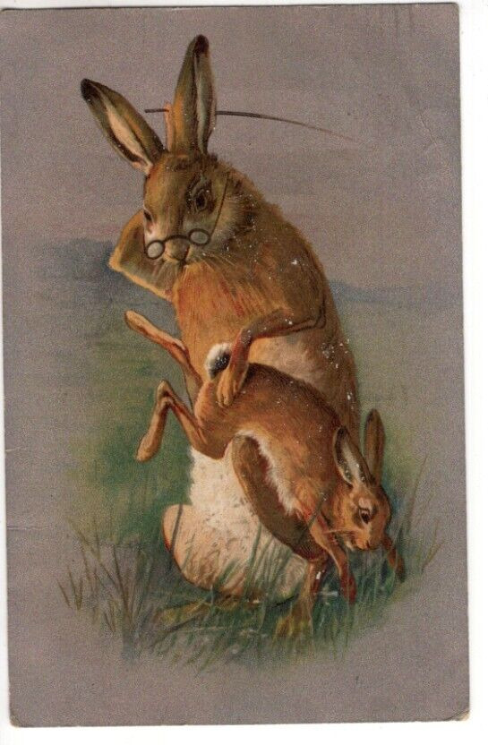 Title (ebay affiliate link): ANTIQUE EASTER Postcard DADDY BUNNY SPANKING BABY BUNNY