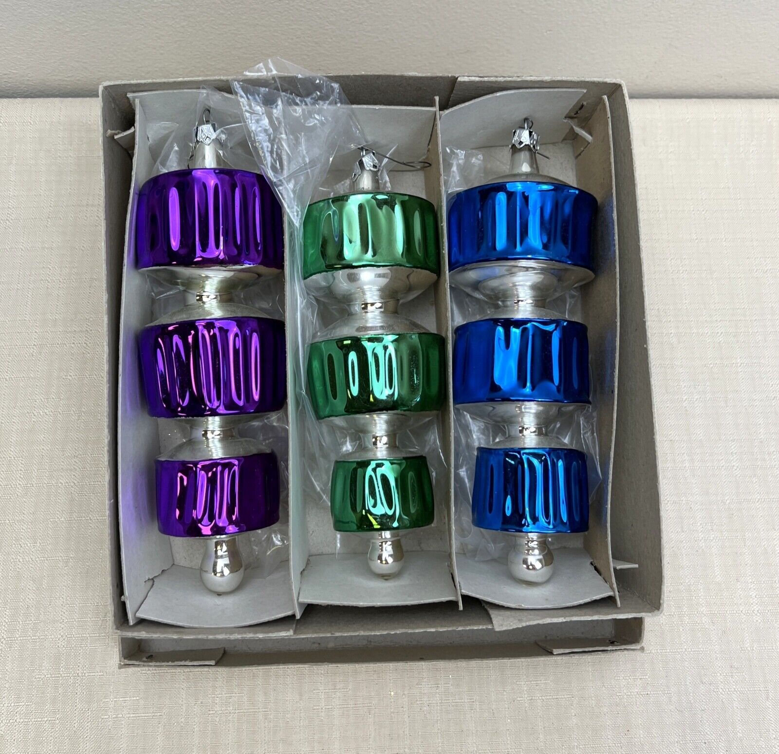 Set 3 Vintage Christopher Radko Glass Ornament Grecian Column Blue Green Purple