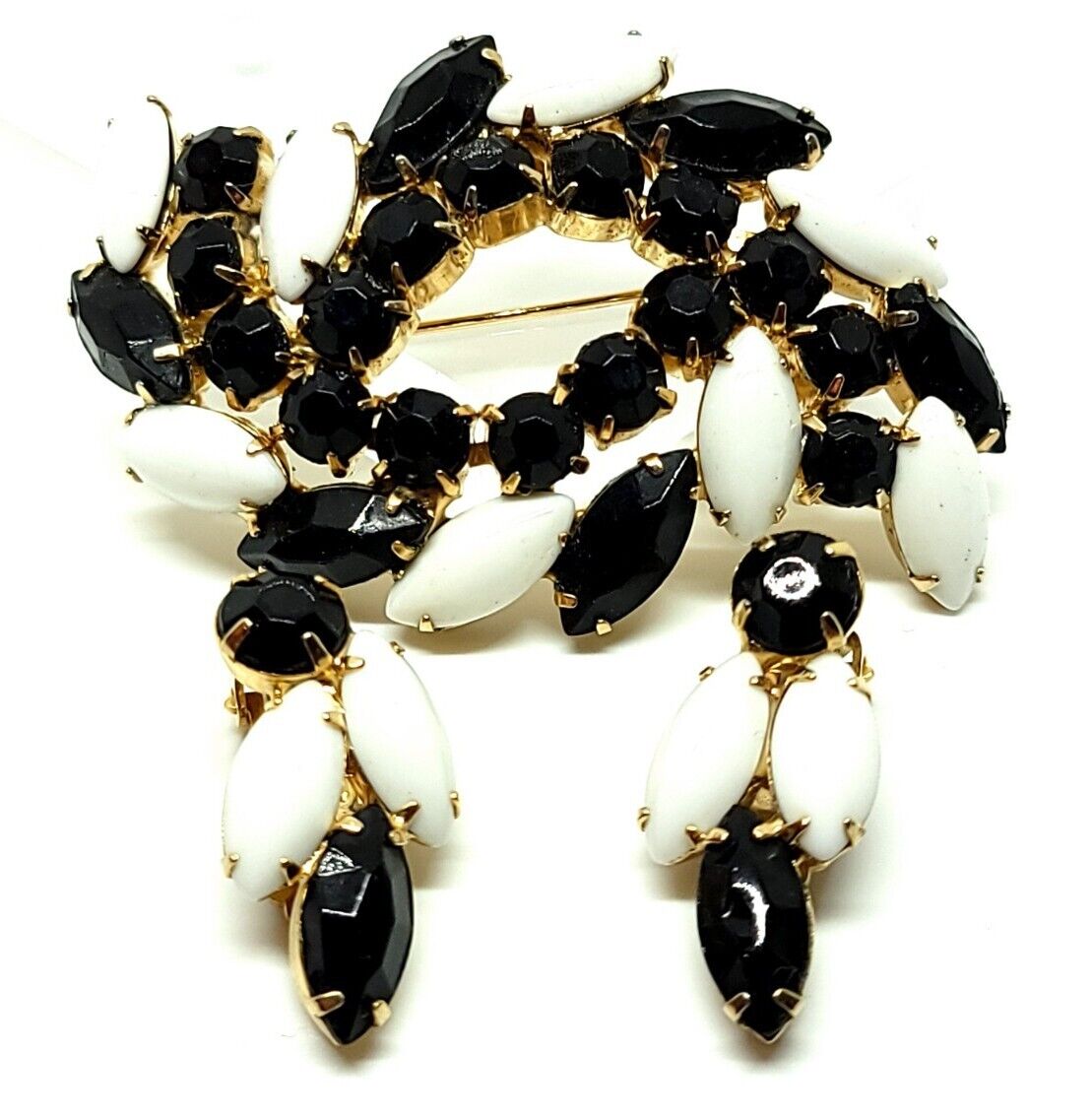 Title (ebay affiliate link): Vintage Milk Glass Navette Cab Black Glass Navette Gem Floral Brooch Earrings